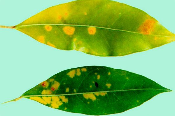 Фикус может поражаться различными болезнями, которые проявляются на листьях в виде пятен. Культура может пострадать от таких проблем: