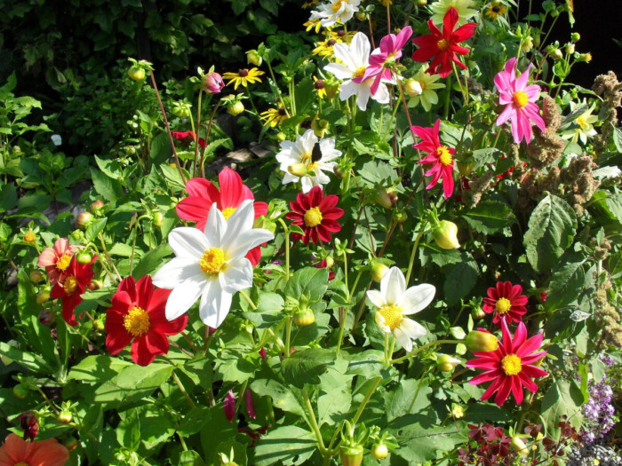 Среднерослые и высокорослые формы (до 70-100 см) подходят для создания живых изгородей, групповых посадок на заднем плане и срезки. Разнообразие форм соцветий — от простых до густомахровых — и богатая палитра окрасок дают простор для творчества.