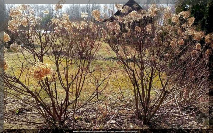 - Слишком низкая обрезка перед укрытием. Радикальная осенняя обрезка куста, особенно крупнолистных гортензий, цветущих на побегах прошлого года, лишает растение цветочных почек, заложенных на верхушках. Осенью удаляют только отцветшие соцветия и явно поврежденные ветви. Формирующую обрезку проводят весной, после раскрытия и оценки состояния перезимовавших побегов.