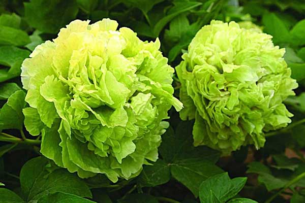 Наиболее выигрышно смотрится древовидный пион с бледно-зелёными бутонами, напоминающими объёмные помпоны, в садах, оформленных в японском стиле.
