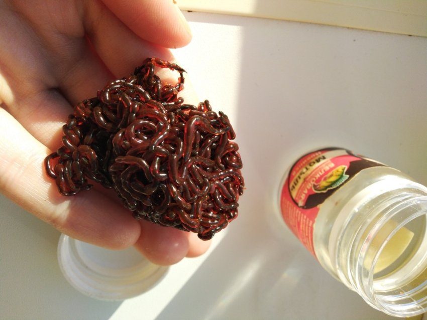 Вещь оказалась необычной — сверху вроде желатиновая основа, а внутри силиконовый стержень. Ну прям настоящий мотыль! С виду прям не отличишь! Даже пахнет червями! А я ожидала какой-нибудь химозный, резиновый запах, а нет, там аппетитно тварью пахнет живой.