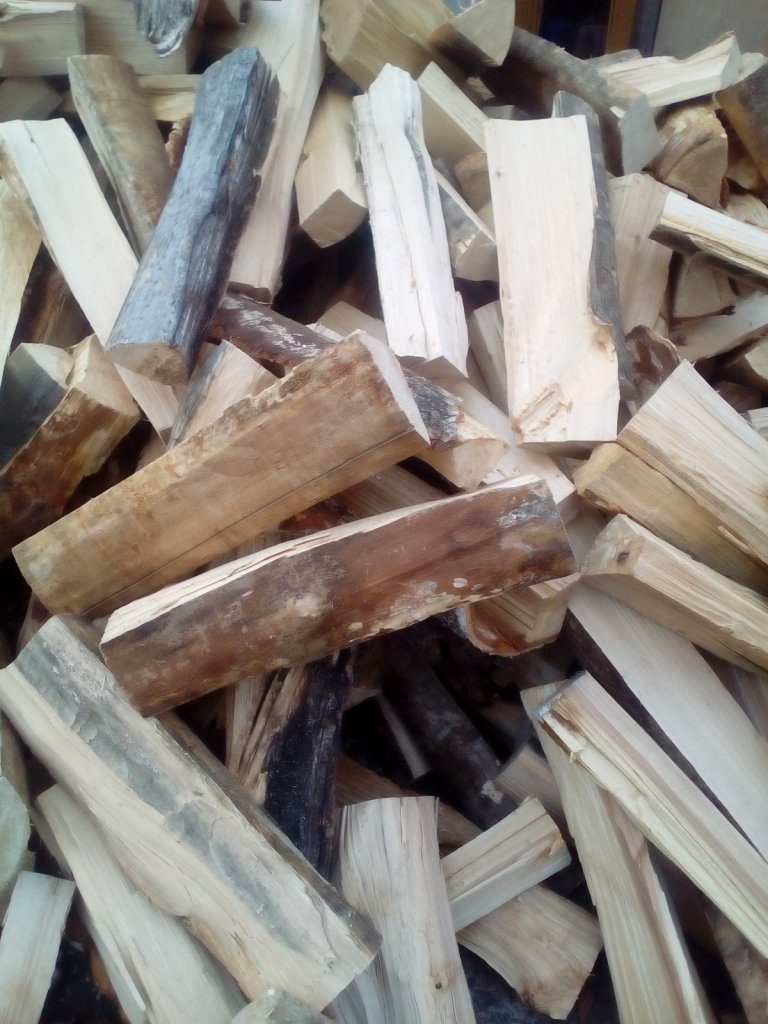На дачных столбах нашли объявление о продаже дров, позвонили, и в субботу ближе к вечеру нам привезли целый грузовик колотых берёзовых дров. Получилась огромная куча крепких поленьев, которые пахли свежими опилками.