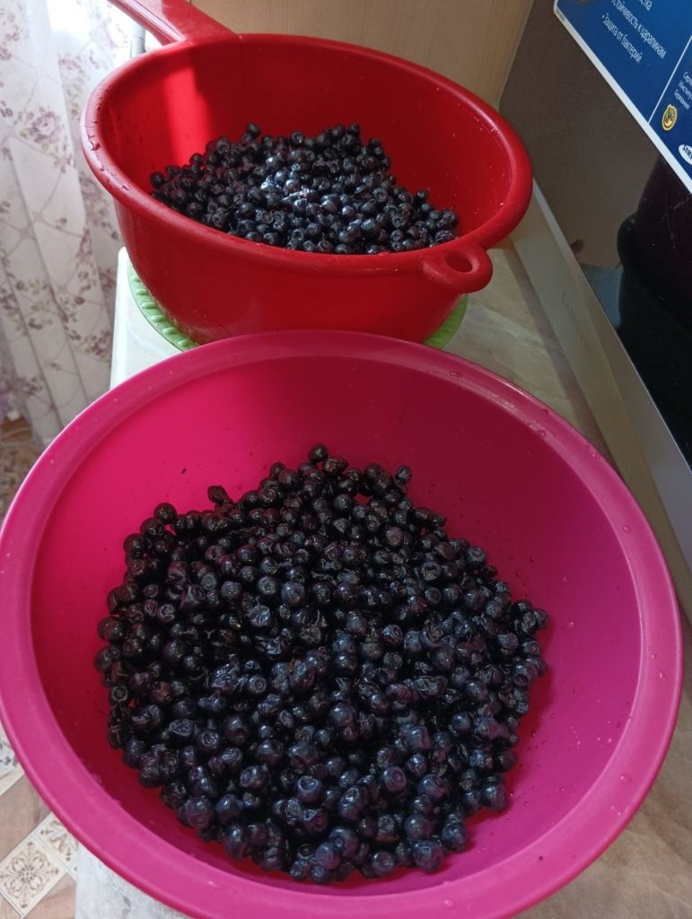 Будем зимними, морозными вечерами пить чай с полезным черничным вареньем.