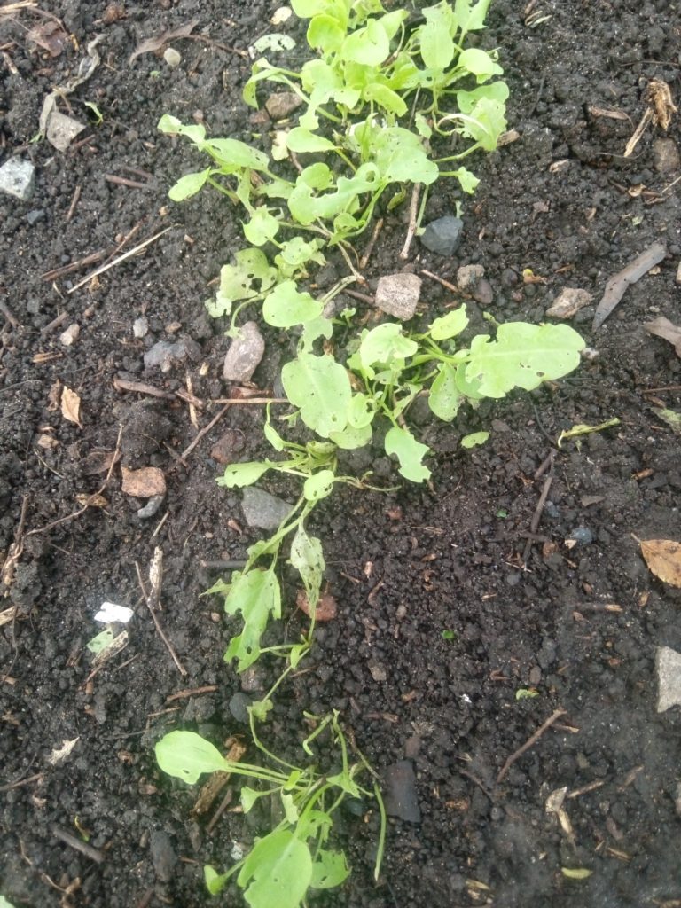 Но даже не это самое страшное, а то, что из-за повышенной влажности (а вода у нас стояла в огороде), всходы полностью остановились в росте. Их заливало водой и в итоге салат пропал.