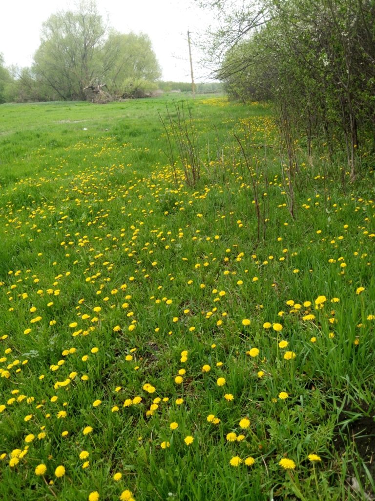 На заднем дворе , уже дальше огородов, у нас очень много одуванчиков: