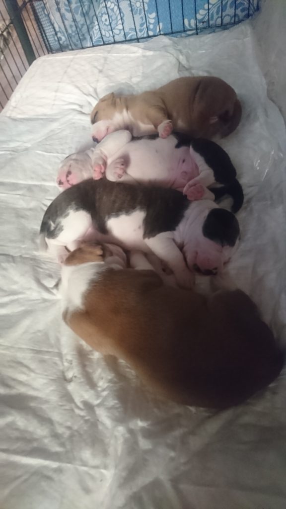 Пришло время рассказать о щенках, которые у нас появились! Я писала о том, как протекала беременность нашей Чары (порода стаффтерьер), а также о родах. На сегодняшний день не осталось ни одного щенка – всех разобрали! Как я уже писала, у нас родилось 3 девочки и один пацан. Вот такие карапузы жили с нами чуть больше месяца: