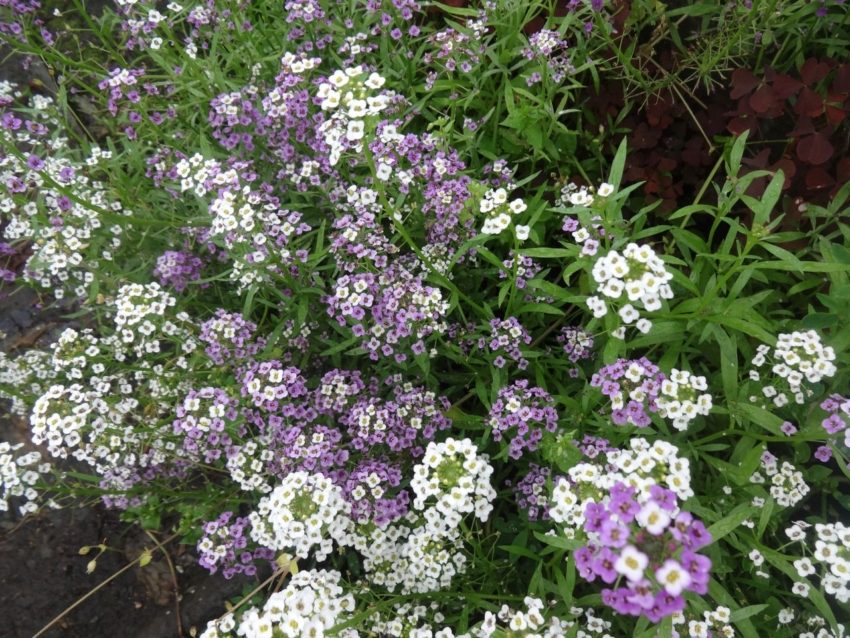 Многие дачники называют лобулярию алиссумом, даже в пакетиках семена подписаны как алиссум. Но у алиссума цветки жёлтые. А у лобулярии селекционеры выводят всё новые сорта, с бордовыми, красными, фиолетовыми оттенками.
