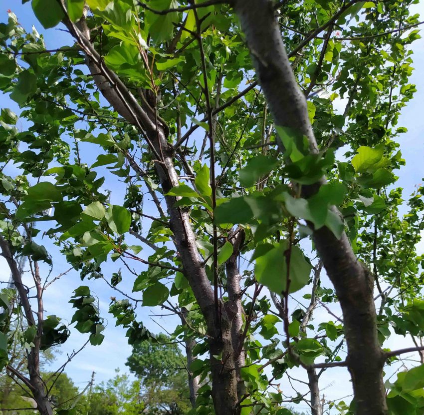 Итак, начну с абрикоса. Сорт «Триумф северный» он уже давно отцвел, но похоже, урожая с него в этом году мы не увидим. Зима была очень тёплая, снега почти не видели, по крайней мере за всю зиму выпал всего 3 раза и не пролежал даже сутки.
