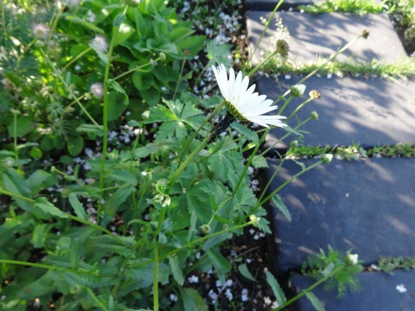 Но зато сорняки и вредители чувствуют себя замечательно. Тли – тьма, какой только нет и чёрная мелкая без крыльев – облепила ромашки и пупавки, молодые ветки вишни, крошечная с крылышками поселилась на петуньях, галловая тля покрыла листья смородины красными вздутиями, побеговая – скрутила листья смородины, сливы, яблони, крупная зелёная и светлая облепила липкой массой листья дельфиниума.