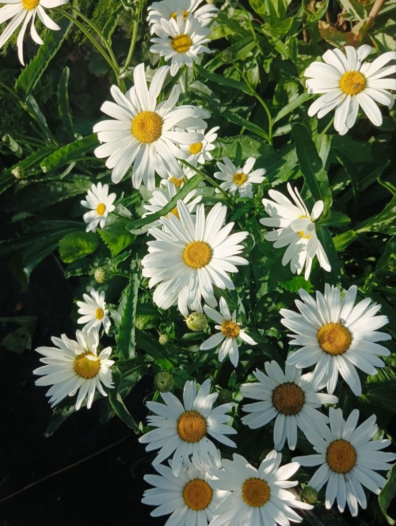 Семена ещё остались. Если ромашки хорошо перенесут зиму, то весной посею семенами ещё в другом месте. Ромашки невысокие, кустики аккуратные, хорошо смотрятся на переднем плане. У меня посажены возле высокого седума.