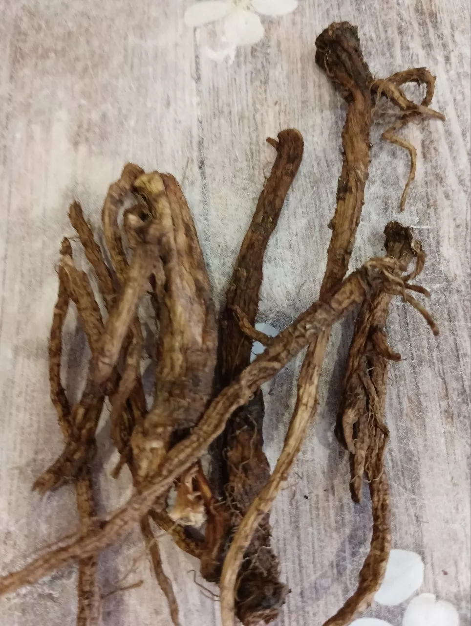 Весной выкапываю корни, промываю их от земли, сушу под навесом или в квартире, разламываю на небольшие кусочки.