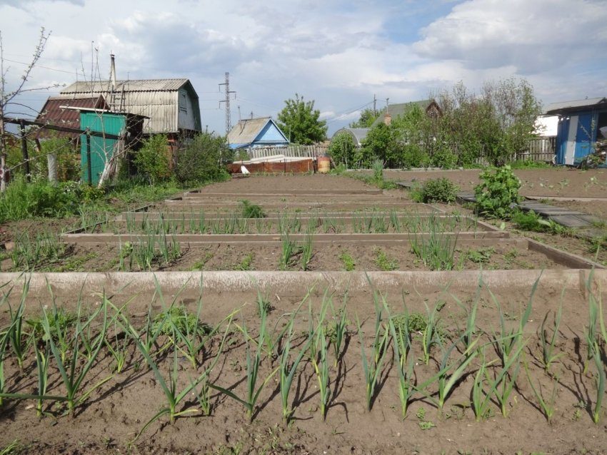Грядки с овощами посеяли в начале мая. Лук, летний чеснок, морковь, свёкла взошли хорошо. На днях нужно прополоть грядки от сорняков, они растут гораздо быстрее.