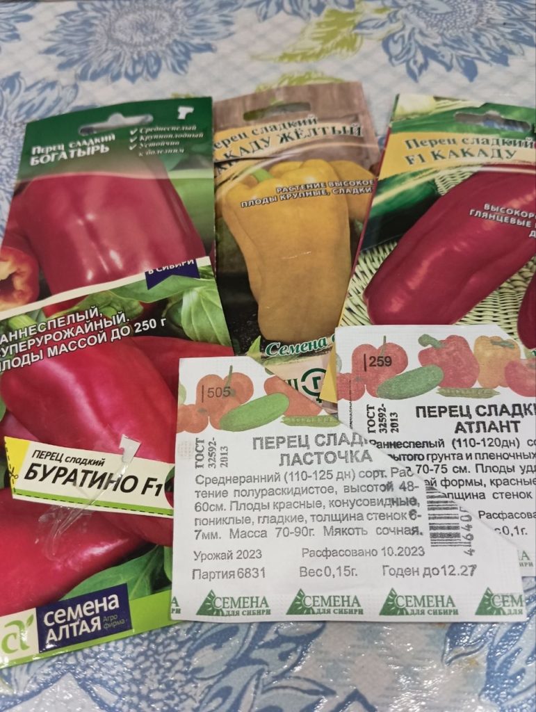 Здравствуйте дачники, огородники и те, кто просто будет читать мою заметку. Мы все уже запаслись семенами, грунтом, посеяли семена и у многих все подоконники забиты рассадой. Я тоже всё это закупила и с конца февраля у меня началась самая настоящая посевная. Начала с подготовки семян перца к посадке. Вот такие перцы купила на 2024 год.