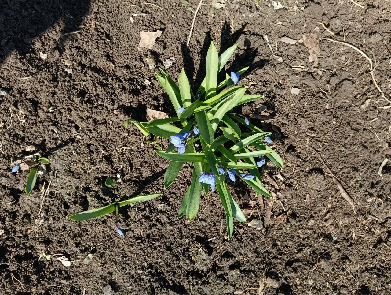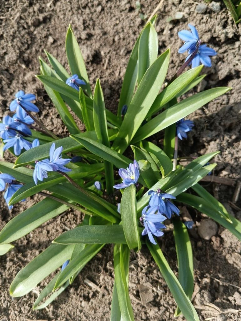 Сцилла сибирская, как и мускари цветы эфемероиды, после цветения листочки пропадают, а луковицы остаются в земле.Чтобы в цветнике не было пусто нужно рядышком высаживать какие-нибудь цветы летники.У меня рядом с пролеской взошли васильки, может оставлю их или посажу бархатцы.