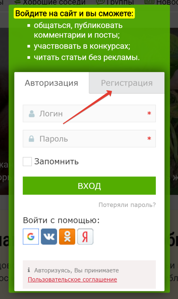Вы также можете зарегистрироваться и войти на сайт с помощью таких сервисов (если у вас есть там аккаунты, конечно):