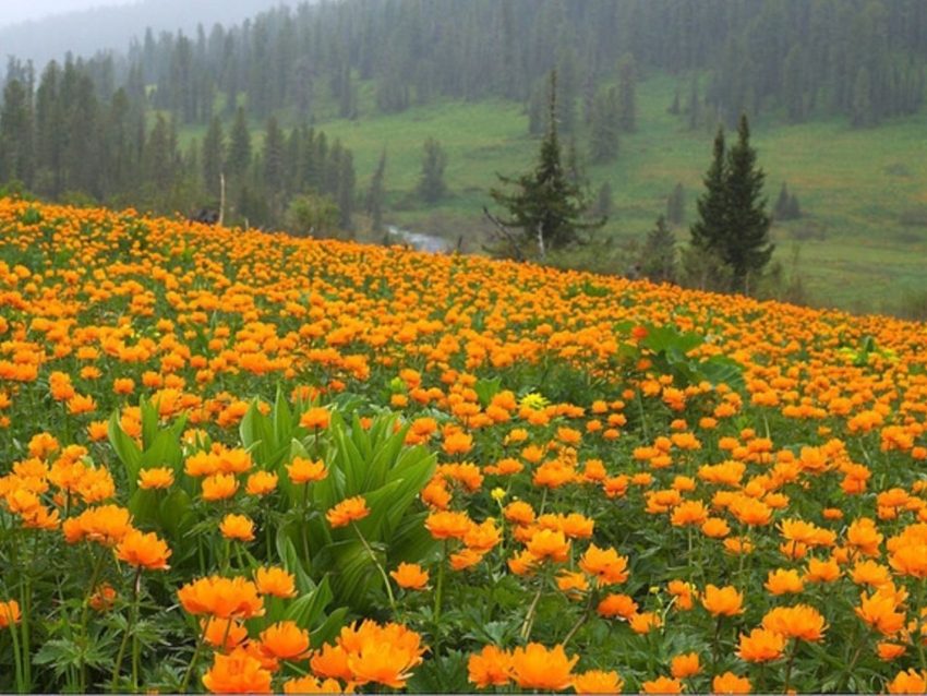 Сплошь цветут купальницы-яркие жарки!