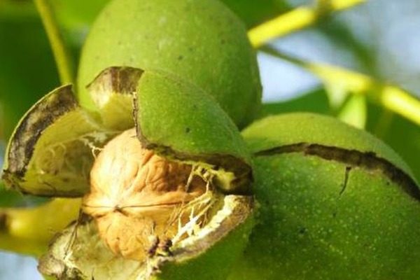 Плоды созревают в середине сентября. К этому времени дерево уже сбрасывает листву, что значительно облегчает сбор урожая и позволяет сократить его сроки. Они отличаются длительным временем хранения, поэтому собранные орехи можно употреблять в течение года до следующего сезона.