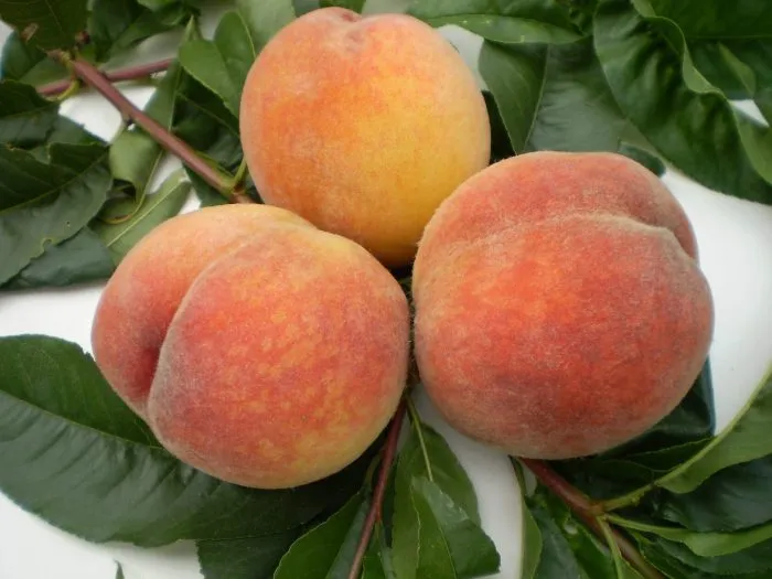 - Мякоть у созревшего персика, несмотря на свою плотность, слегка проминается при осторожном надавливании.