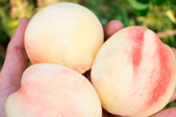Плоды — визитная карточка сорта. Их отличает необычная бело-кремовая расцветка кожицы, иногда с лёгким малиновым румянцем. Фрукты обладают следующими характеристиками: