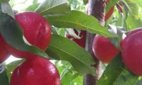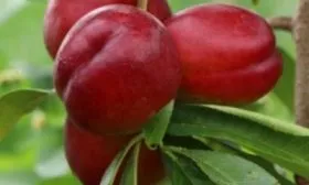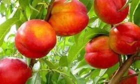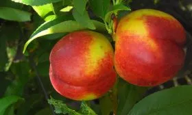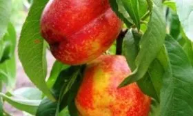 Листва имеет классический для персиковых деревьев вид: ланцетовидные листья с выраженным глянцем на поверхности. Однако главный интерес всегда вызывают плоды, которые полностью соответствуют заявленным в характеристиках параметрам.