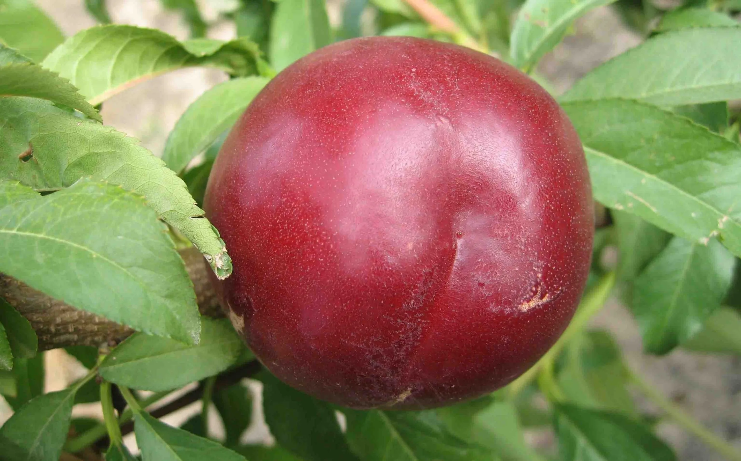 Листовая пластина типична для культуры — глянцевая, ланцетовидной формы и, что важно, без характерного для персика опушения. Именно гладкая кожица плодов и листьев является ботаническим отличием нектарина.