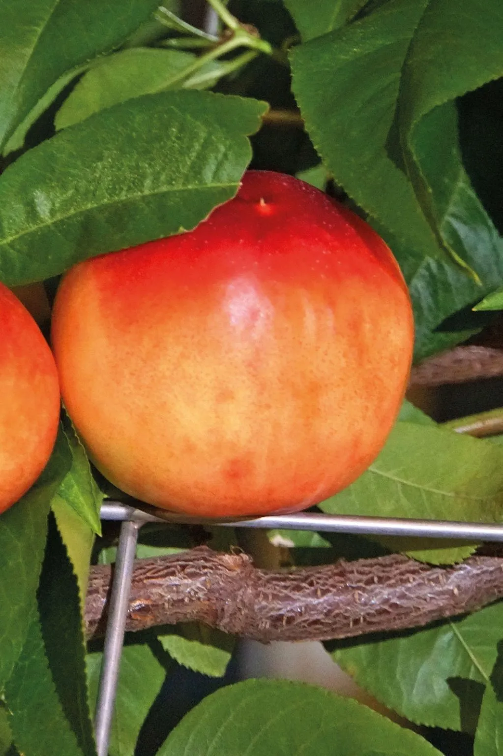 Внешний вид этого нектарина запоминается, прежде всего, своими плодами. Дерево имеет типичную для персиковых культур раскидистую, хорошо облиственную крону, которую необходимо формировать. Но главная «визитная карточка» — это крупные, округлые плоды весом 150-180 граммов.