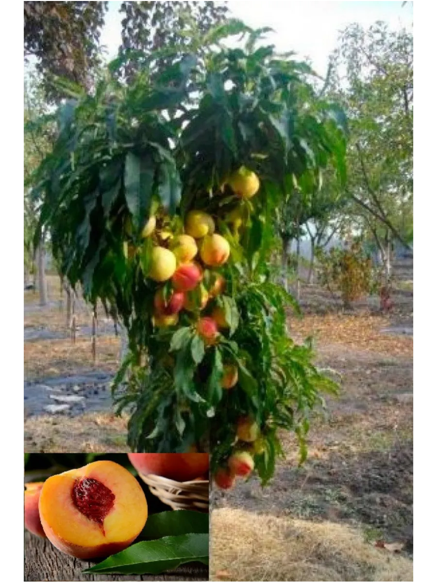 Главная отличительная черта плодов этого сорта — их выдающийся размер в сочетании с компактной формой самого дерева. Масса в 150 граммов для колоновидного персика действительно является значительной, что напрямую связано с высокой урожайностью. Такие крупные плоды формируются благодаря генетическим особенностям сорта и требуют от дерева большого количества питательных веществ и влаги в период налива.