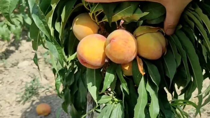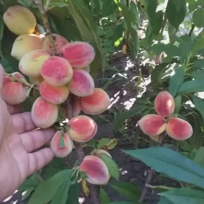 Готовность к съему определяют по комплексу признаков. Плод должен достичь заявленного крупного размера и веса около 150 граммов. Окраска становится яркой: основной светло-желтый фон равномерно покрывается малиновым румянцем. Спелый персик легко отделяется от ветки при поднятии вверх с небольшим поворотом, без усилий и рывков.