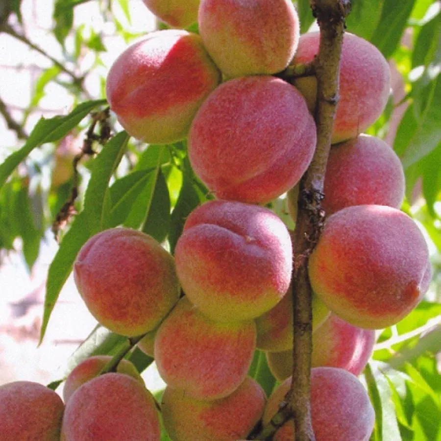 Персик Роман относится к так называемым колоновидным или «колонновидным» сортам. Это его ключевая и определяющая особенность. Такие деревья имеют особый тип роста: выраженный центральный проводник и очень короткие боковые ветви, отходящие под острым углом. В результате дерево формирует узкую, плотную крону, похожую на колонну или цилиндр. Это кардинально меняет подход к его размещению в саду и уходу.