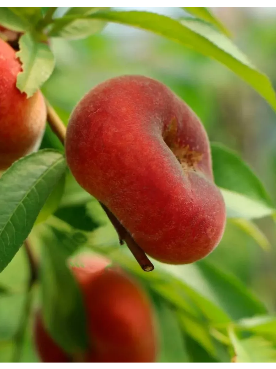 Плоды этого сорта — его главная отличительная черта. Их уникальная плоская форма, которую часто называют инжирной, делает их легко узнаваемыми на фоне классических круглых персиков. Визуально они напоминают репу или крупную пуговицу, что создает обманчивое впечатление о размере — при одинаковом весе они кажутся компактнее своих округлых собратьев.