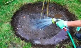 - Подготовьте посадочную яму заранее, чтобы за зиму вскопанный грунт осел, и деревце сохранило правильное положение корневой шейки. Добавьте 20 кг навозного перегноя и 500 г древесной золы – этого запаса питания хватит на первый год.