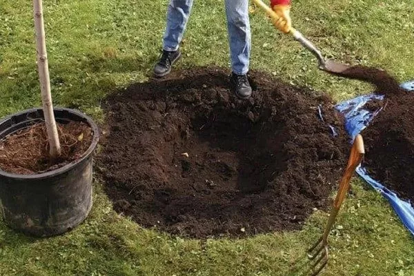 - Затем яму засыпьте землёй и слегка утрамбуйте.