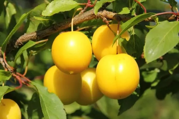 Плоды небольшие, округлой или овальной формы, с золотистой окраской. Кожица плотная и прочная, что делает сливы устойчивыми к повреждениям при транспортировке.
