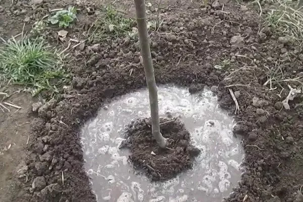 - Обильно полейте (20-30 л воды), чтобы земля осела и уплотнилась.