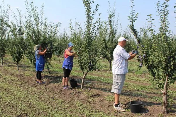 В процессе работы удаляют засохшие и повреждённые ветви, а также формируют крону сливы, удаляя лишние побеги, которые мешают проникновению солнечного света в крону.