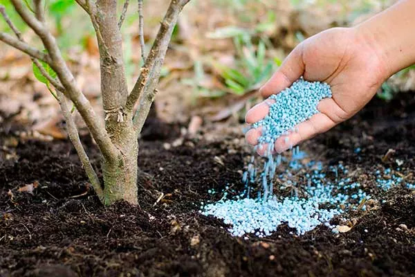 - Добавьте удобрения, а затем покройте почвой, чтобы избежать ожогов.