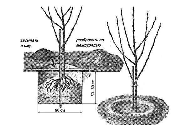 - Для подготовки посадочной ямы (которая должна быть готова за 14 дней до посадки, но идеально, если это сделать осенью) выкопайте яму глубиной 65-80 см и шириной 50-55 см.