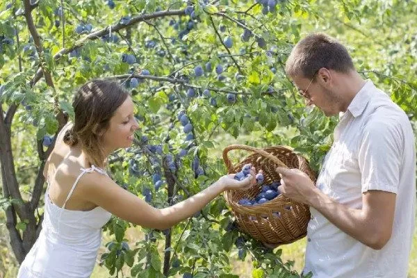Снимайте сливы с ветвей по мере их созревания. Подгнившие экземпляры собирайте в отдельную ёмкость и уничтожайте их. Не оставляйте их на дереве. Уборку урожая проводите осторожно, стараясь не удалить восковой налёт с плодов. Срывайте фрукты с плодоножкой, чтобы повысить их лёжкость.