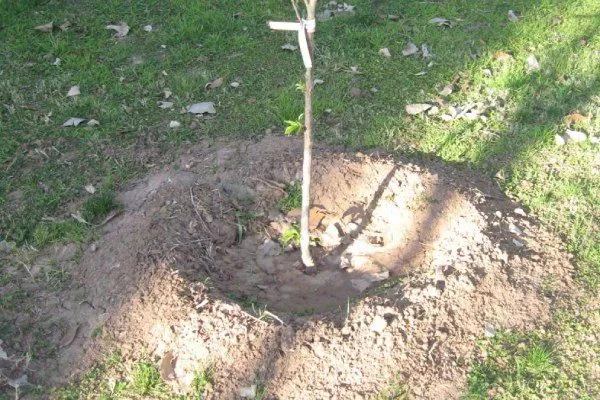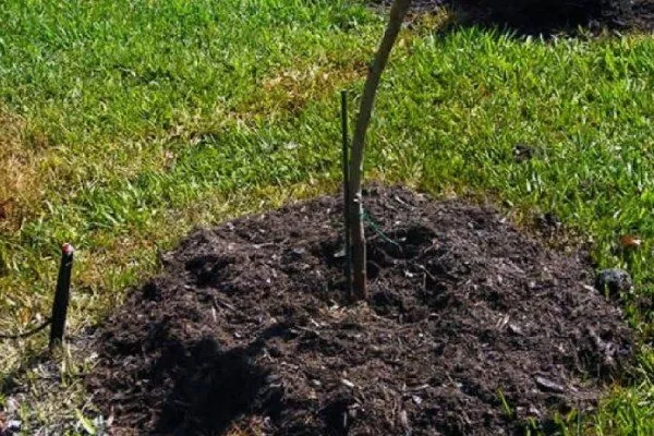 - Уплотните почву под деревцем. Соорудите почвенный валик по краю приствольного круга, чтобы предупредить растекание воды во время поливов.