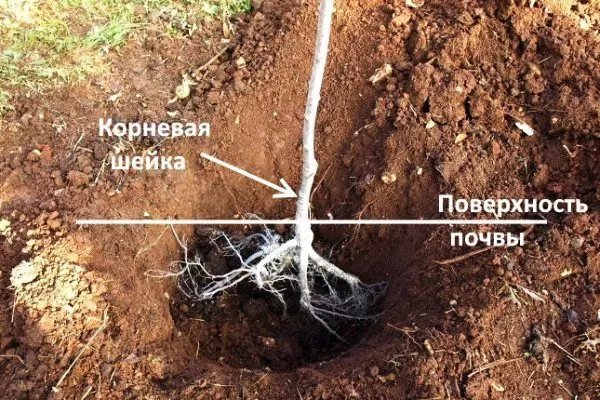 - ✓ Глубина посадки саженца должна быть такой, чтобы корневая шейка находилась на 5-7 см выше уровня грунта, что предотвратит её загнивание.