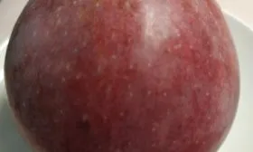 Основной зеленый фон кожицы почти полностью скрыт под живописным, размытым розово-красным румянцем. Однако главной отличительной чертой является не цвет, а текстура поверхности. Очень сильный естественный восковой налет создает плотное матовое покрытие, придающее плодам благородный сизоватый, бархатистый оттенок.