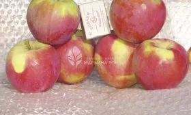 Яблоки выглядят очень привлекательно и имеют товарный вид. Они отличаются правильной, выровненной плоскоокруглой формой и средним размером, со средним весом около 120 граммов.