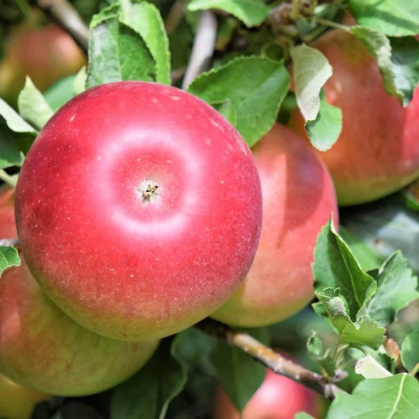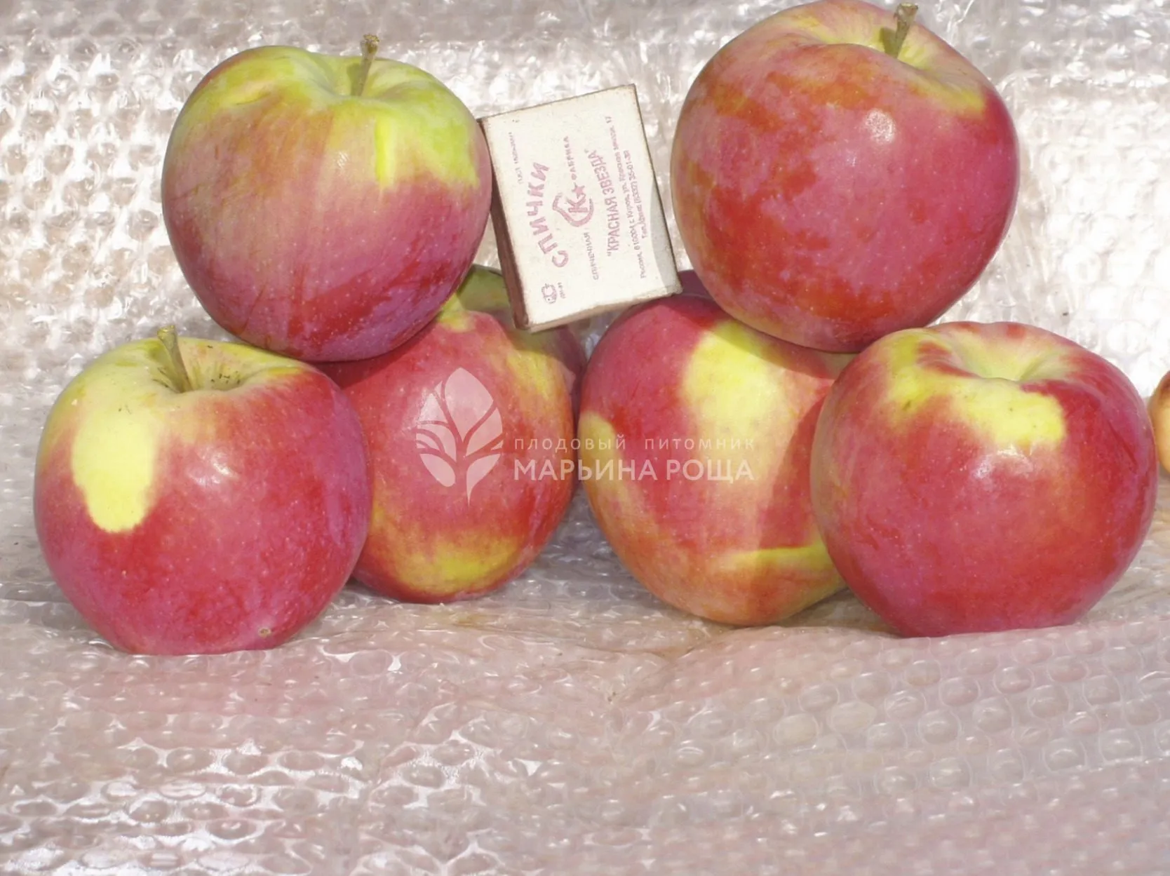 Яблоки выглядят очень привлекательно и имеют товарный вид. Они отличаются правильной, выровненной плоскоокруглой формой и средним размером, со средним весом около 120 граммов.