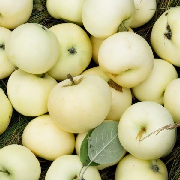 Съемная зрелость наступает в начале сентября, что типично для осенних сортов. Главный визуальный признак готовности — равномерная белая или желтоватая окраска кожицы без зеленых пятен. Проверить зрелость можно, аккуратно повернув яблоко вокруг оси: если плодоножка легко отделяется от веточки, а семена внутри стали темно-коричневыми, урожай готов к сбору.