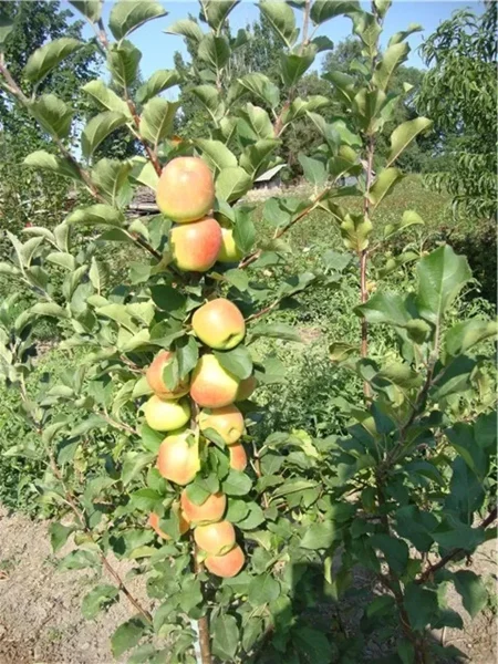 Это строго колонновидный сорт. Дерево растет в один ствол, практически не образуя длинных боковых скелетных ветвей. Плодоношение сосредоточено на многочисленных кольчатках (коротких плодовых образованиях) и копьецах, которые густо обрастают вокруг центрального проводника. Такое строение делает растение похожим на зеленую колонну, усыпанную плодами.
