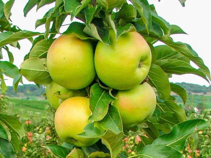 Плоды имеют классическую шаровидную, выровненную форму, что говорит о хорошей наследственности и стабильности сорта. Основной окрас кожицы — спокойный зеленый. На солнечной стороне к моменту съемной зрелости в конце сентября может проявляться нежный, размытый румянец, но интенсивной окраски ждать не стоит.