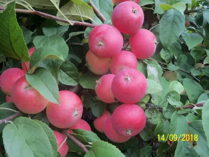 Определить оптимальное время для уборки урожая несложно. Съемная зрелость наступает, когда плоды приобретают равномерную алую окраску с легким серебристым налетом. Важный признак — семена в плодах становятся темно-коричневыми. Спелое яблоко отделяется от плодовой веточки (кольчатки) при подъеме и легком повороте без усилий.