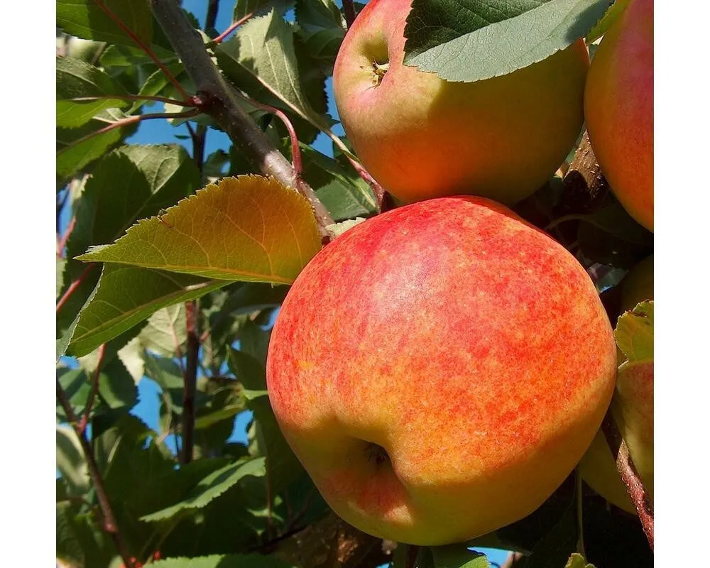 От Голден Делишес гибрид унаследовал выдающуюся скороплодность, регулярность плодоношения и привлекательный товарный вид крупных плодов. Генетика Ренета оранжевого Кокса подарила яблокам насыщенный, сильный аромат и богатый, гармоничный вкус, который высоко оценивается дегустаторами.