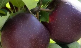 Плоды — настоящая гордость сорта. Они отличаются выровненной, правильной округлой формой и крупным размером, средний вес составляет около 250 граммов. Основная отличительная черта — уникальная окраска кожицы. Это насыщенный, темный карминный (густо-красный) цвет, который в фазе полной зрелости и под воздействием солнечного света может казаться почти черным с бордовым оттенком, что и дало название сорту.