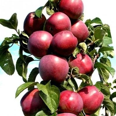 Внешний вид этой яблони сразу выдает ее принадлежность к колонновидному типу. Дерево среднерослое, с выраженным центральным проводником (лидером) и очень короткими боковыми веточками, отходящими под острым углом. Благодаря такой архитектуре оно формирует стройную, малогабаритную колонну, практически не разрастающуюся вширь.